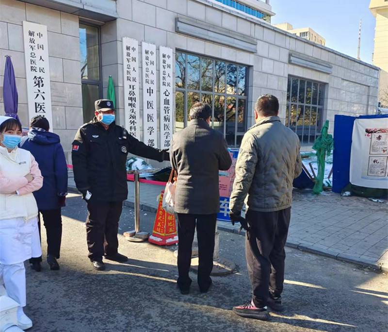 驻院安保人员分布在全院各个区域,从秩序维持、车辆指挥、日常巡逻到体温检测,他们密切配合医护人员,尽全力维持好医院秩序。同时对急诊、发热门诊等重点要害部位加强巡逻防范,防止发生扰乱医疗秩序事件的发生。
